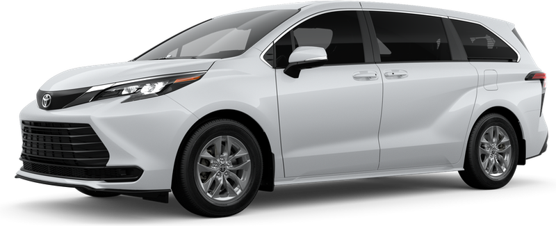 Lease: Terms available on approved credit through Toyota Financial Services (TFS) at participating Toyota dealers. Not all customers qualify. Lease example based on 2026 Sienna 4WD Wagon LE Hybrid CVT Model 5403 with Total SRP of $43,885, net capitalized cost of $38,725, and a lease end purchase amount of $31,158. $3,999 Due At Signing includes $2,860 customer down payment, first month's payment of $389 of the 39 month lease offer, and $750 Acquisition Fee. Security deposit required with exception of prior Toyota Financial Services (TFS) financing history and/or TFS credit rating in which a security deposit may be waived. Tax, title, license are extra. Dealer contribution may vary and could affect lease payment. Individual dealer prices, other terms and offers may vary. Must lease from participating dealer's stock and terms are subject to vehicle availability. Lessee responsible for maintenance, excess wear and use, and will pay $0.15 per mile for all mileage over 12,000 miles per year. $350 disposition fee is due at lease end.Offer cannot be combined with TFS Finance Cash, Down Payment Assistance, Trade-in Assistance, Customer Cash, APR, Finance Subvention Cash. Offer available in AZ, CO, NM, NV, UT, WY regardless of buyer's residency; void where prohibited. Expires 03-02-2026. Dealer sets final price. See your participating Toyota dealer for details. Toyota Financial Services is a service mark used by Toyota Motor Credit Corporation (TMCC). Retail installment accounts may be owned by TMCC or its securitization affiliates and lease accounts may be owned by Toyota Lease Trust (TLT) or its securitization affiliates. TMCC is the servicer for accounts owned by TMCC, TLT, and their securitization affiliates.