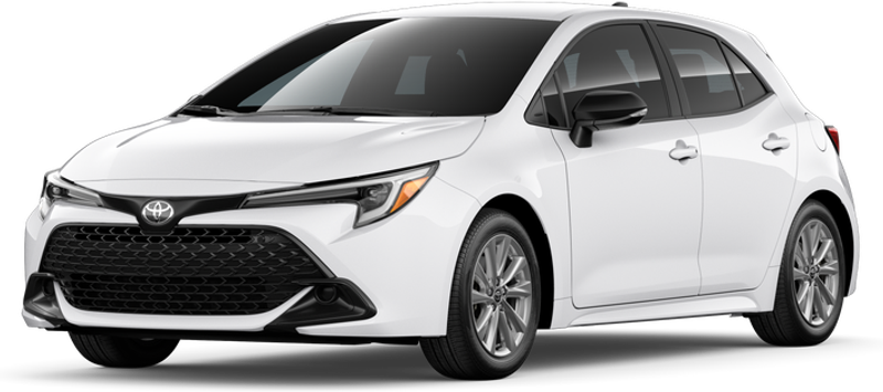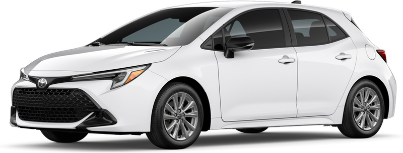 APR: Qualified customers who finance a new 2026 Corolla Hatchback can receive as low as 4.99% APR for 72 months with 72 monthly payments of $16.10 for every $1,000 financed. Terms available on approved credit through Toyota Financial Services (TFS) at participating Toyota dealers. For only very well qualified customers. Amount financed, down payment amount, and credit worthiness may impact availability of offer. Dealer contribution may vary and could affect price. Individual dealer prices, other terms and offers may vary. Must take retail delivery from dealer's stock and terms subject to vehicle availability. Offer cannot be combined with TFS Lease Cash, Down Payment Assistance, Trade-in Assistance, Customer Cash, Lease, Lease Subvention Cash. See your participating Toyota dealer for details. Dealer sets final price. Offer available in CA regardless of buyer's residency; void where prohibited. Expires 03-02-2026. Toyota Financial Services is a service mark used by Toyota Motor Credit Corporation (TMCC). Retail installment accounts may be owned by TMCC or its securitization affiliates and lease accounts may be owned by Toyota Lease Trust (TLT) or its securitization affiliates. TMCC is the servicer for accounts owned by TMCC, TLT, and their securitization affiliates.