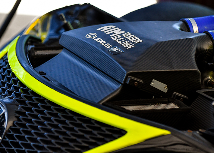 A: The Lexus RC F GT3 race car and the RC F road car share a similar platform and components for the most part. The GT3 engine is tuned up a little bit and uses race specific components due to the environment it is used in.