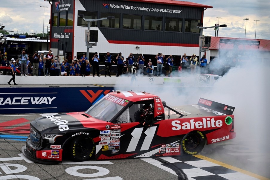 “That’s awesome,” said Heim. “Just so grateful for all of my guys at TRICON Garage and Toyota Racing. Yesterday in practice, I honestly thought we were not one of the better trucks. We looked at a lot of data overnight and made it better, so super grateful for those guys for their hard work overnight. The guys back at the shop have been working hard to get this Gateway truck ready, so awesome to bring home our Tundra p1 in the Toyota 200, so that is another special event for us. This was my second ever win – and first win on a non-superspeedway, so it means everything to come back here, especially with my illness from last year – just watching from the sidelines – just grateful to be back and healthy this year, and picking up a win.”
