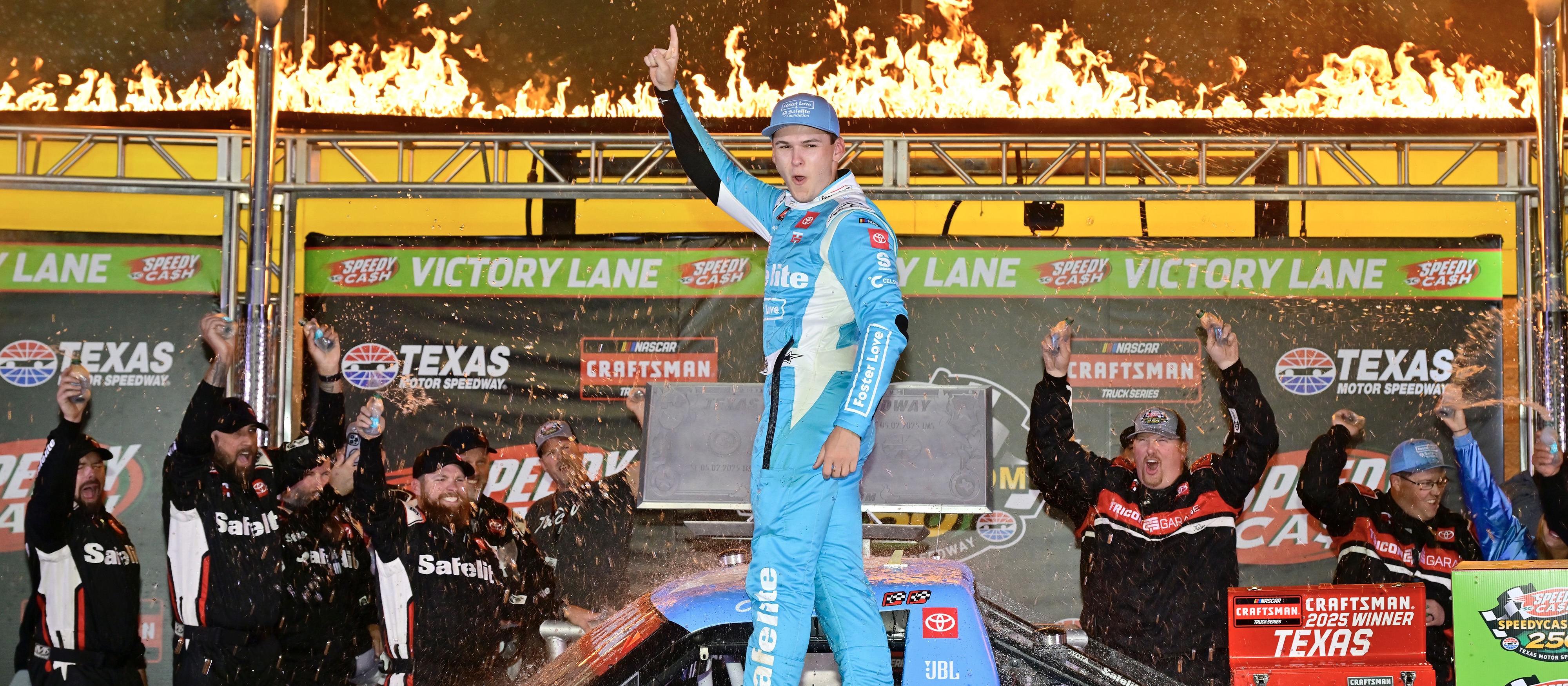 “I can’t believe how many restarts we got there in the end, but went into turn one pretty much in the worst possible position I could be in – three wide middle,” said Heim. “I knew I was either going to win or wreck. I was willing to take that risk. We were really dominant in the race today, so I kind of laid it all out there. I knew the risk, but I wanted the reward. Super thankful for TRICON Garage, Toyota, Safelite – it is just so cool to have this National Foster Care Month scheme. It is a really good cause we are going for and to open it up with a win in the month of May is really cool.”