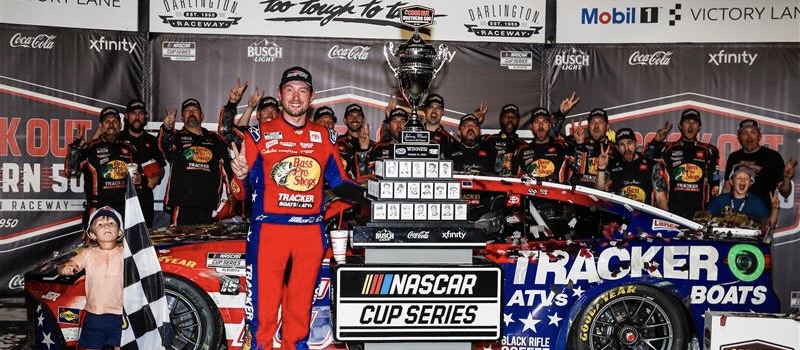 “There at the end, that was way harder than it needed to be,” Briscoe said. “Man, just what an incredible Bass Pro Shops Toyota. As a fan, I have watched Martin (Truex Jr.) dominate a lot of races, and it was fun to finally be behind the wheel of it. It is so cool to win two Southern 500s in a row. This is my favorite race of the year because of the race fans. You come here and it is sold out. The atmosphere is unlike anything else. Great way to start our Playoffs and man, that was a lot of fun.”