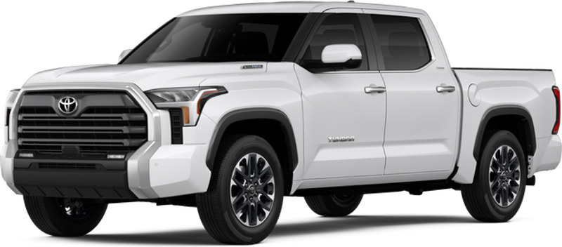 Lease: Terms available on approved credit through Toyota Financial Services (TFS) at participating Toyota dealers. Not all customers qualify. Lease example based on 2025 Tundra i-FORCE MAX 4WD Crew Max LTD Hybrid 10AT Model 8421 with Total SRP of $66,950, net capitalized cost of $60,702, and a lease end purchase amount of $41,509. $3,999 Due At Signing includes $2,630 customer down payment, first month's payment of $619 of the 36 month lease offer, and $750 Acquisition Fee. Security deposit required with exception of prior Toyota Financial Services (TFS) financing history and/or TFS credit rating in which a security deposit may be waived. Tax, title, license are extra. Dealer contribution may vary and could affect lease payment. Individual dealer prices, monthly payment, and other terms and offers may vary. Must lease from participating dealer's stock and terms are subject to vehicle availability. Lessee responsible for maintenance, excess wear and use, and will pay $0.15 per mile for all mileage over 10,000 miles per year. $350 disposition fee is due at lease end. Offer cannot be combined with TFS Finance Cash, Down Payment Assistance, Trade-in Assistance, Customer Cash, APR, Finance Subvention Cash. Excludes 4WD Crew Max TRD PRO Hybrid 10AT. Offer available in CA regardless of buyer's residency; void where prohibited. Expires 05-04-2026. Dealer sets final price. See your participating Toyota dealer for details. Toyota Financial Services is a service mark used by Toyota Motor Credit Corporation (TMCC). Retail installment accounts may be owned by TMCC or its securitization affiliates and lease accounts may be owned by Toyota Lease Trust (TLT) or its securitization affiliates. TMCC is the servicer for accounts owned by TMCC, TLT, and their securitization affiliates.
